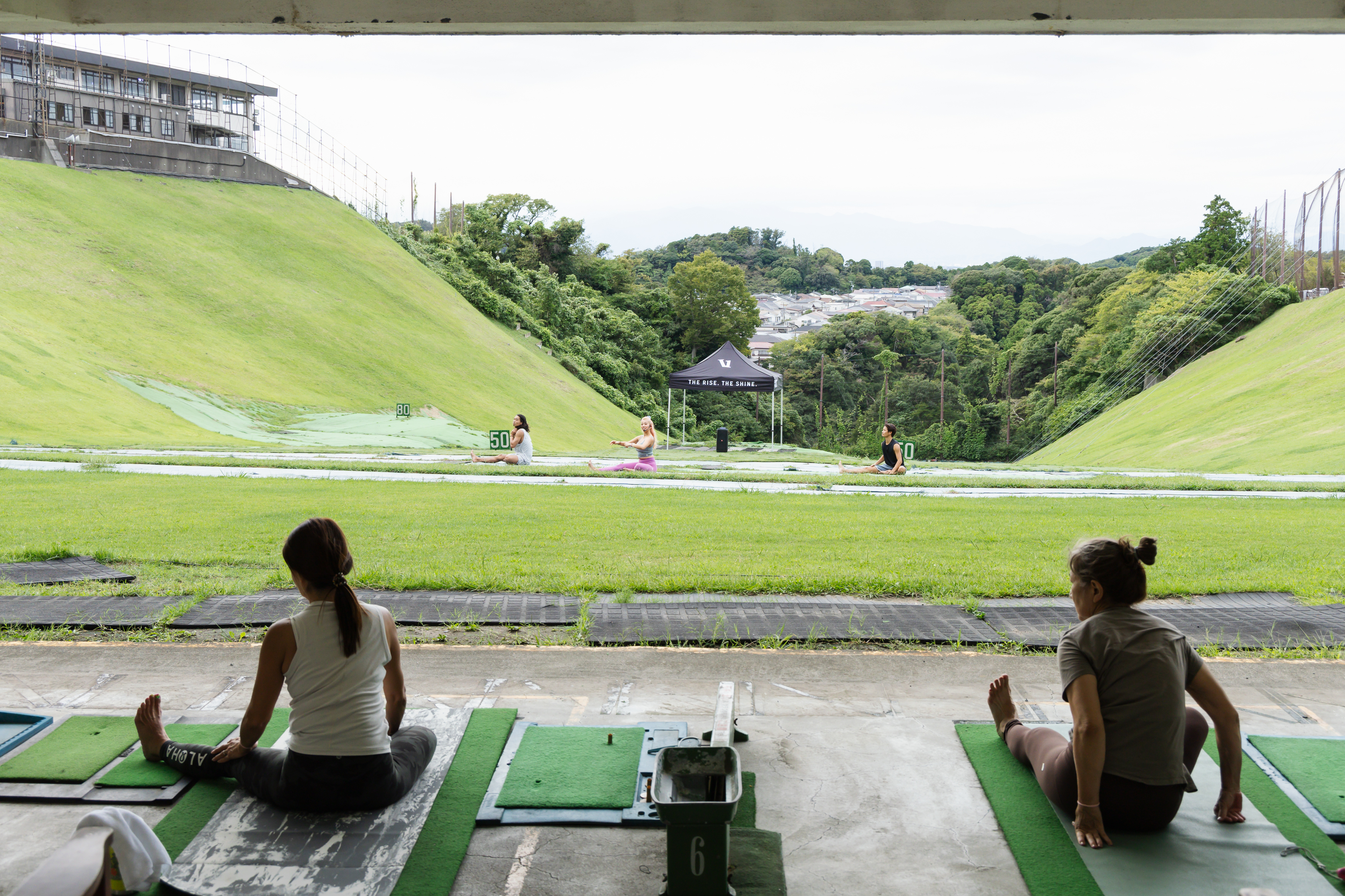まずは屋外練習場で行われた「ゴルフ場DEヨガ」。湘南で活動するインストラクターが指導し、風と緑を感じながら呼吸を整える時間は、参加者にとって日常から切り離されたリトリートのような体験となった。