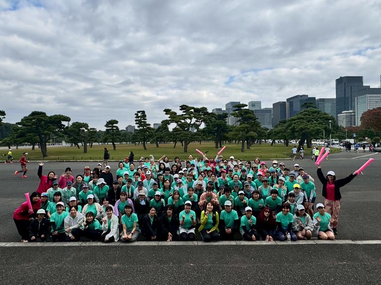 当日は澄み渡る青空の下、皇居周辺にライトグリーンのTシャツを身につけた女性たちが集結。ランニング初心者から日常的に走る女性まで層は幅広く、準備体操を終えると、5kmと10kmの部に分かれて桜田門を出発した。