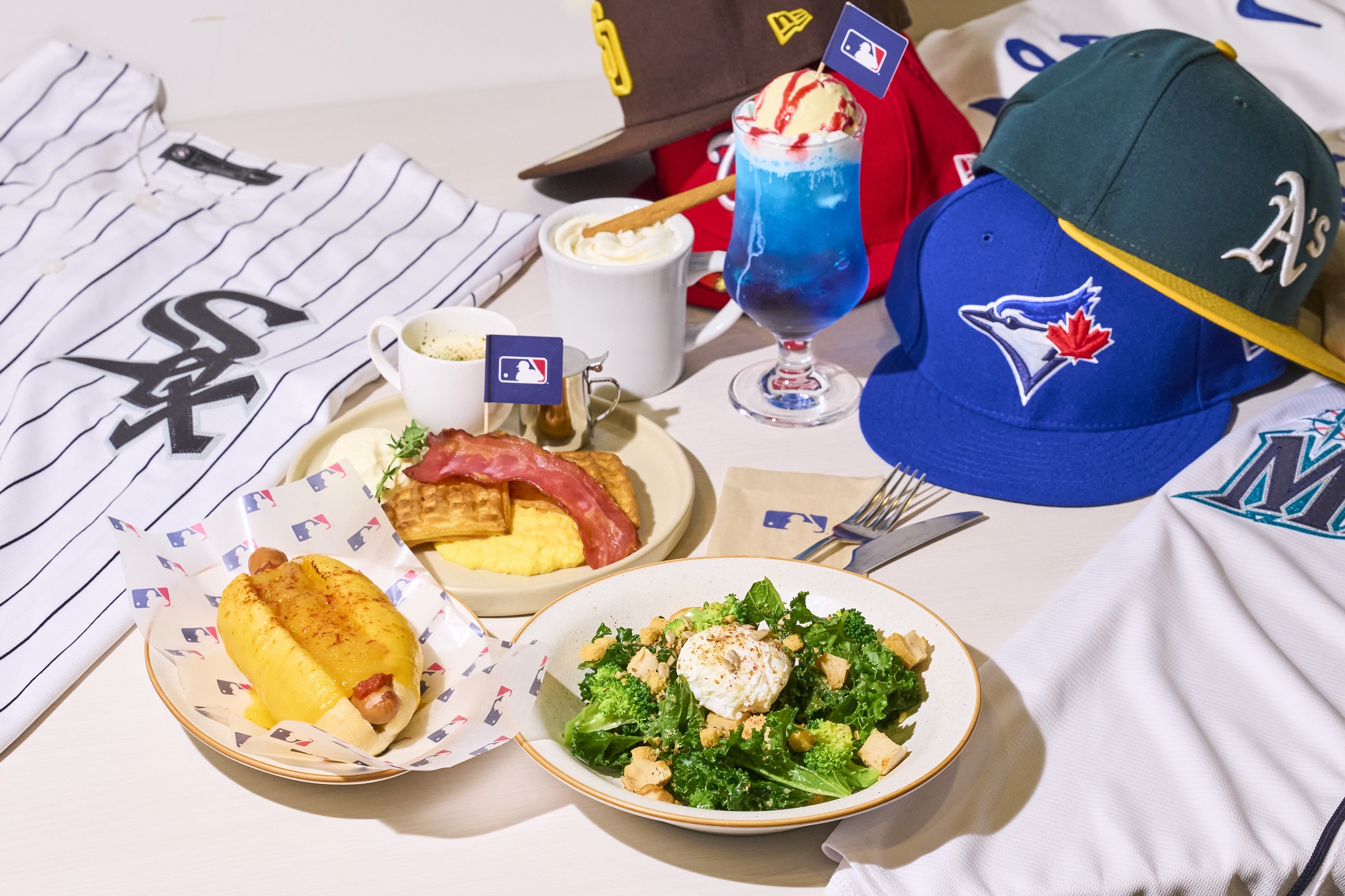 MLB Breakfast Clubのオリジナルメニュー店内にはドジャースの大谷翔平をはじめとするMLB選手のスタンディーや各チームのユニフォーム、キャップなども展示され、試合開催日には大型モニターでリアルタイムの観戦もできるなど、ファンならずともMLBの世界にどっぷりと浸れるようになっている「ブレックファスト・キャラバン」。第2弾以降の開催場所については今後、MLB公式SNSなどで順次告知されていく予定だという。